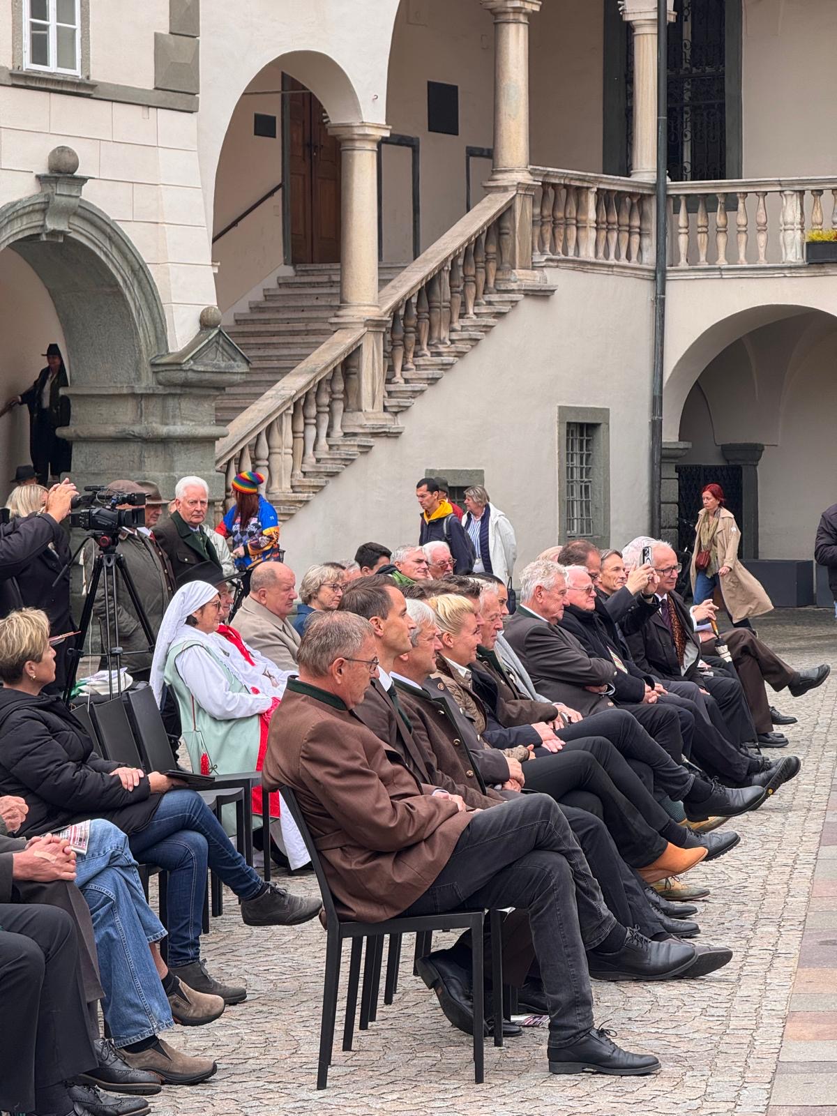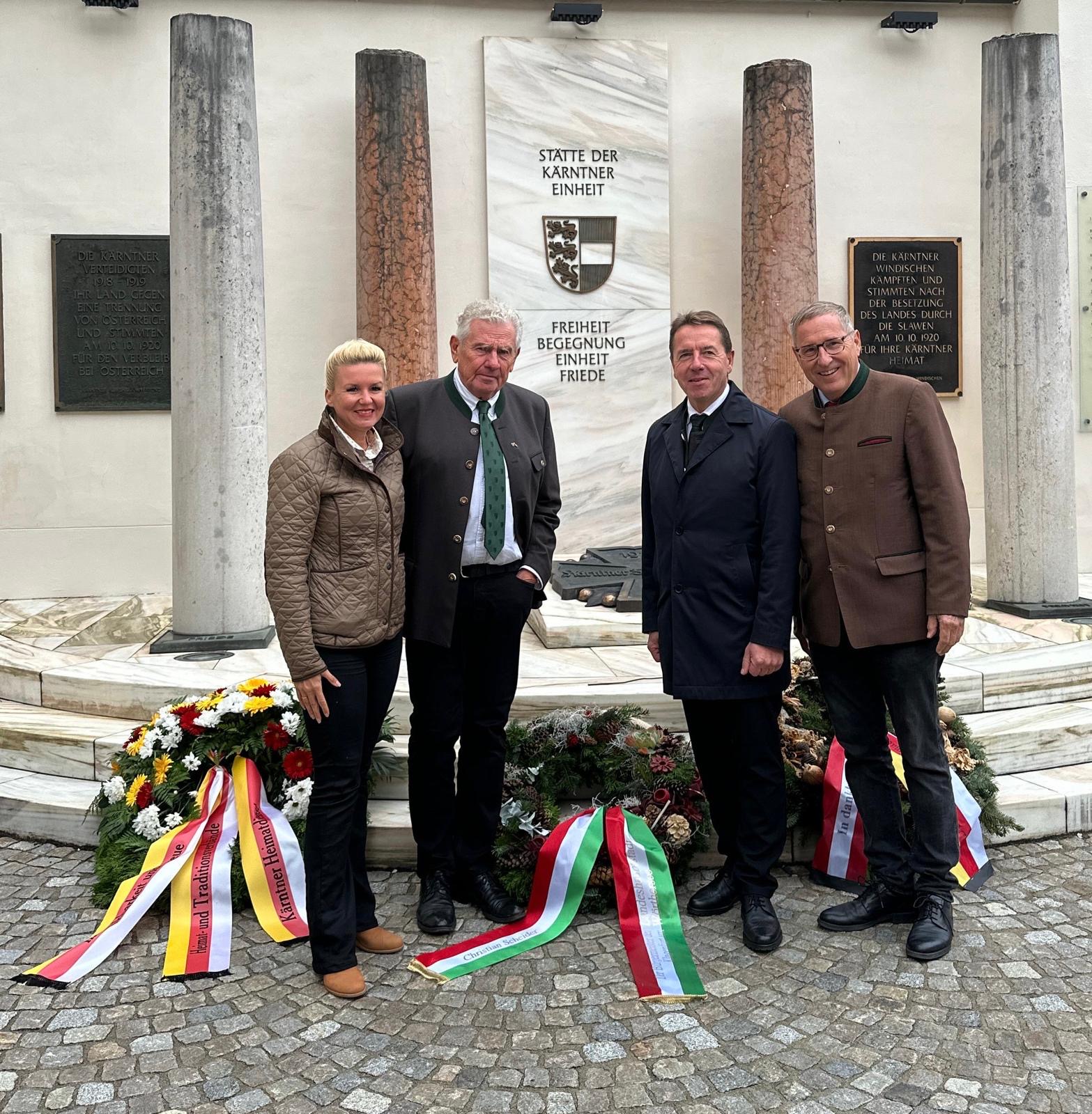 Das Gedenken an Abwehrkampf und Volksabstimmung der Kärntner Heimat- und Traditions-Verbände im Klagenfurter Landhaushof am Vortag des Landesfeiertags hat nun zum zweiten Mal stattgefunden. Begrüßt vom Landtagspräsidenten Reinhard Rohr und dem Klagenfurter Bürgermeister Christian Scheideer kamen vor dem Denkmal der Kärntner Einheit, das bekanntlich den Heimatverbänden gehört über hundert Kärntner Patrioten zusammen, um bei Klängen der Sängerrunde Emmersdorf und der Khevenhüller Kapelle ein feierliches Gedenken zu begehen.