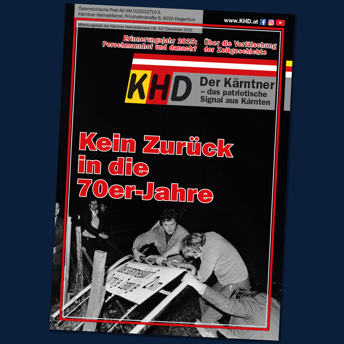 Mit dieser Ausgabe halten Sie die letzte Nummer des Kärntners in diesem Jahr in Händen. Nachdem wir in der vorigen Ausgabe Bilanz gezogen haben über unsere Arbeit rund um den 10. Oktober und die aktuellen Diskussionen über Kärntens Erinnerungskultur im Gedenkjahr 2025, müssen wir nun in dieser Ausgabe davor warnen, die Konflikte und Auseinandersetzungen der Siebziger- und Achtzigerjahre des vor Jahrhunderts wieder aufzuwärmen.